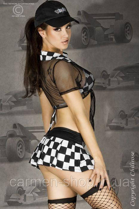 Цей костюм дівчини-гонщики складається з: кепки, бюстгальтера, топа, спідниці, стрингів і панчіх. Ідеальний костюм, щоб додати барв у ваше життя! Дійсно гарячий і сексуальний набір. Модель із престижної колекції Casa Chilirose. Високоякісний продукт Chilirose представлений в елегантній глянсовій коробці, чудовий варіант для подарунка!