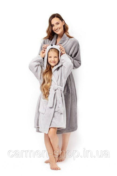 - Теплий однотонний жіночий халат із декоративною строчкою на кишенях і рукавах;