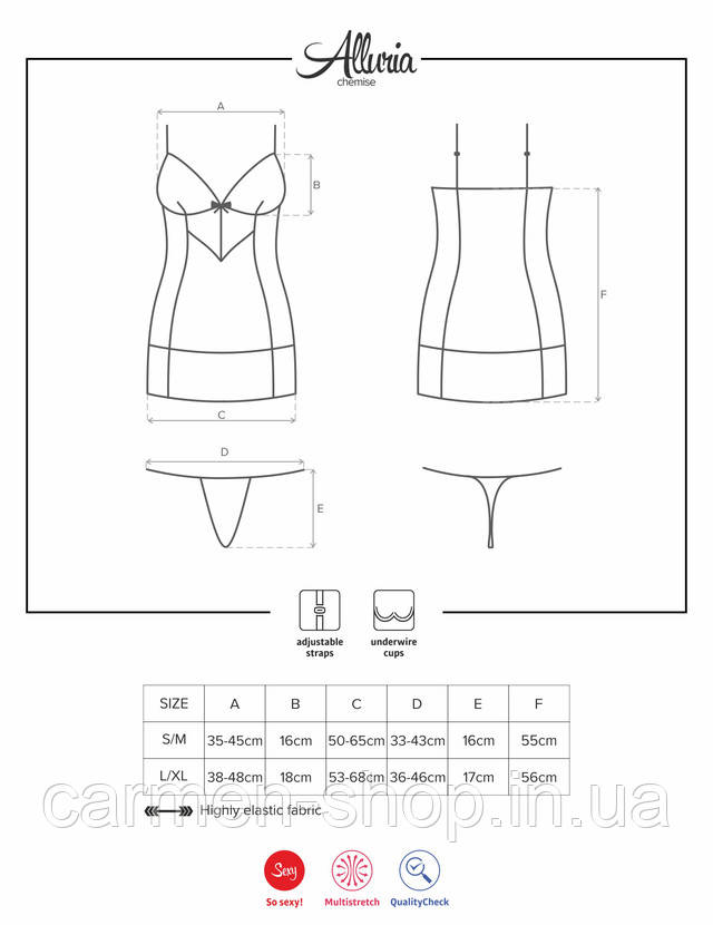 Комплект жіночий комбінація і стринги Obsessive ALLURIA CHEMISE